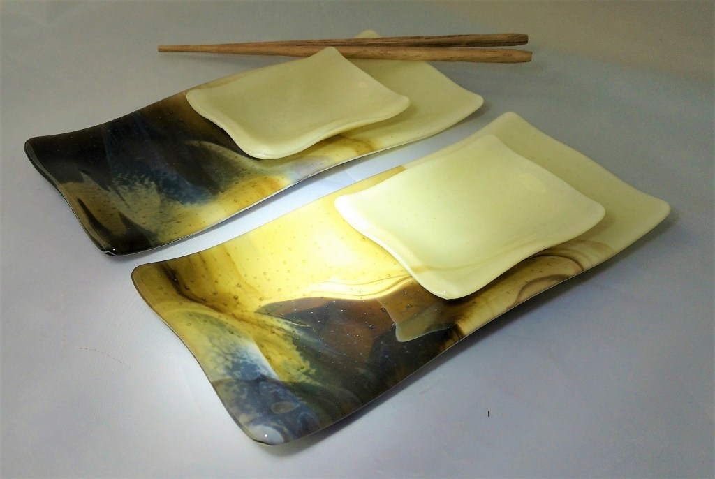 There is something magical about the Idaho sunsets. The everchanging luminosity, radiance, and intense palette has been our inspiration to experiment with different medias from hand painting to the art of fused glass.