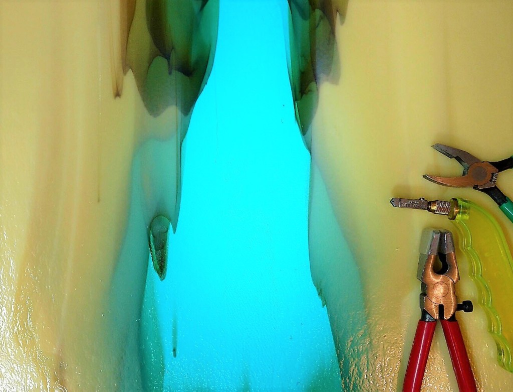 These pieces cannot be replicated due to the process of painting by hand or using hand made glass. Variations in thickness, texture and size, as well as air bubbles that may appear are characteristic features and beauty of hand workmanship.